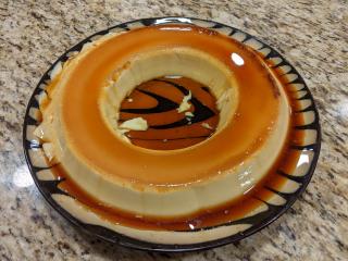 Beat eggs and combine with remaining milk, vanilla, and cooled milk/sugar/anise mixture. Pour over cooled sugar in flan mold.